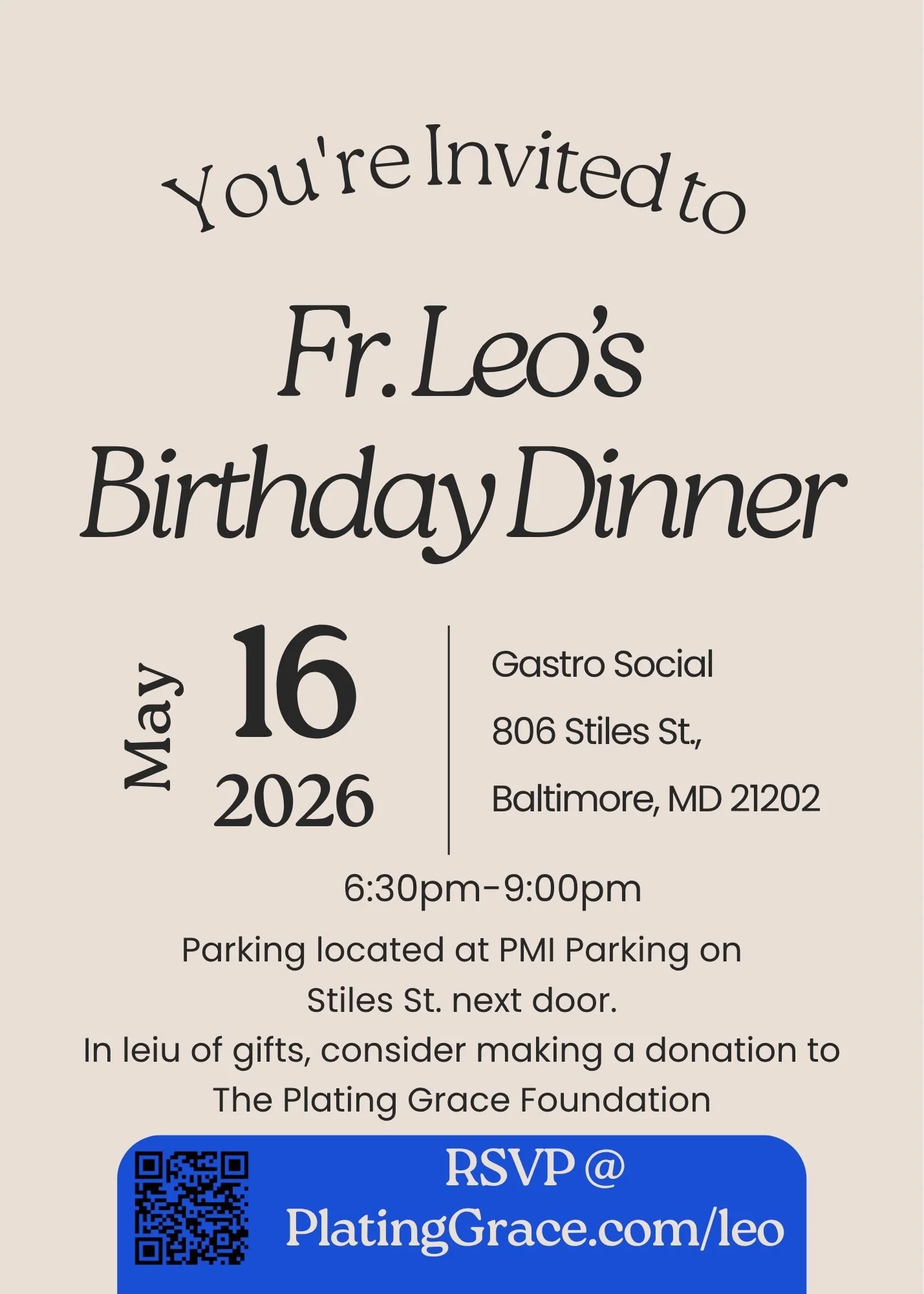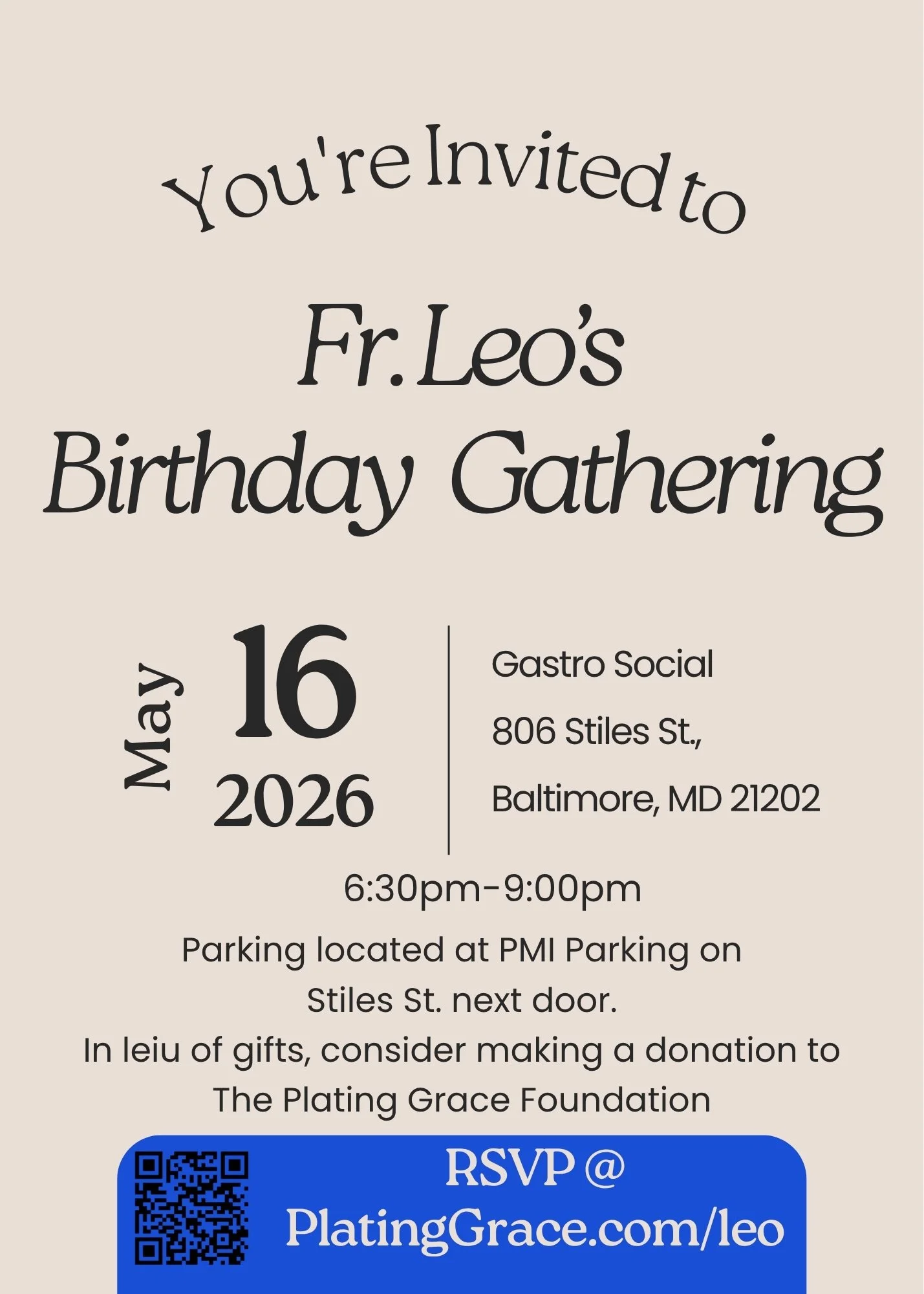 The Plating Grace Foundation is Father Leo’s and Plating Grace’s Offical 501(c)(3) non-profit organization.
